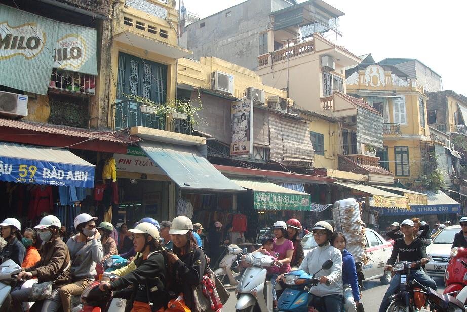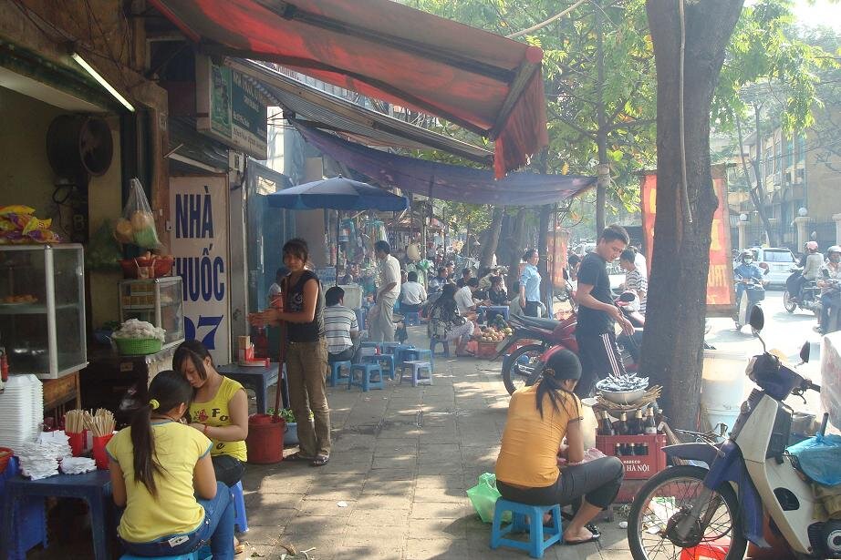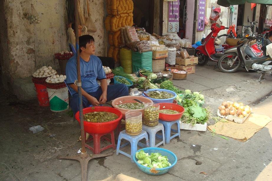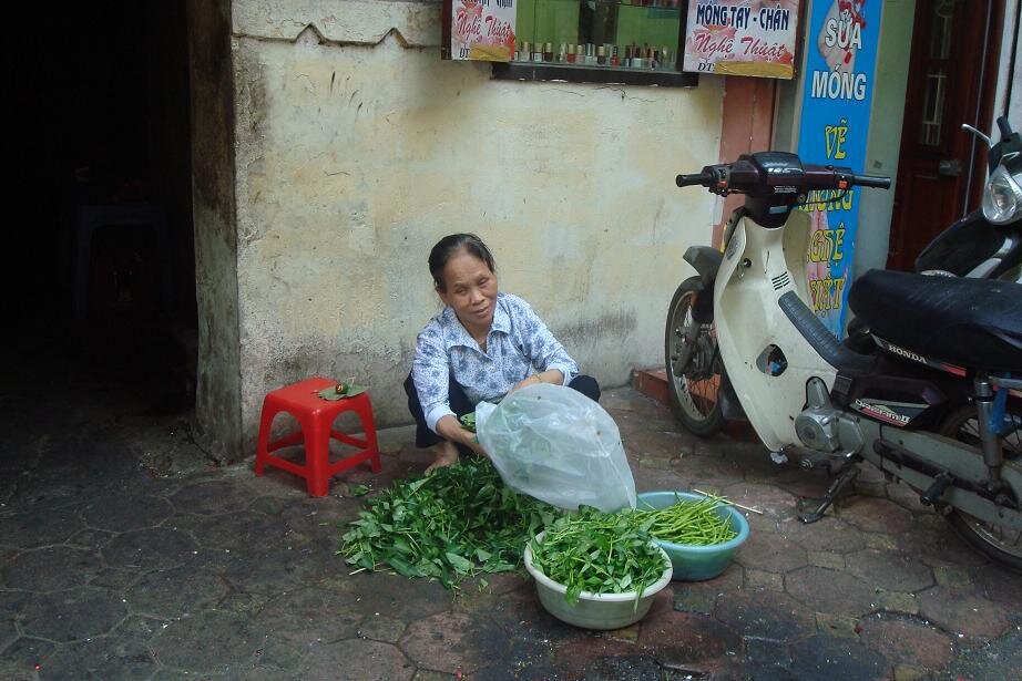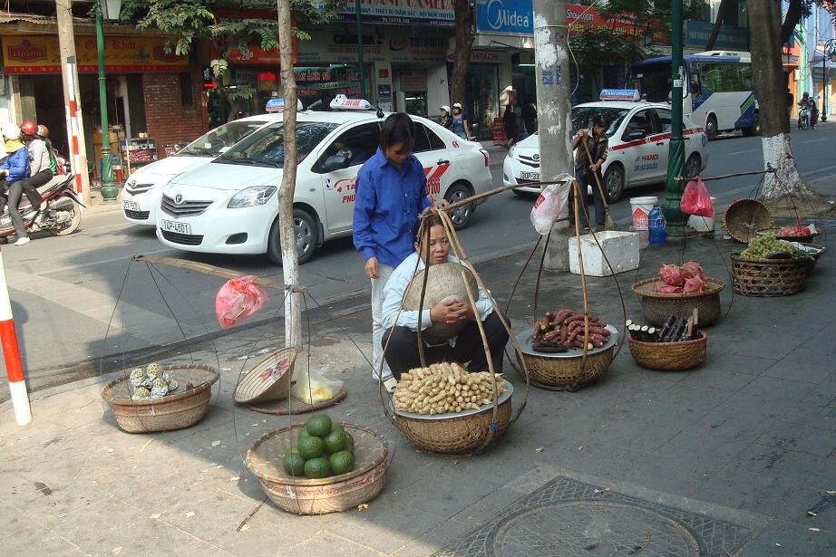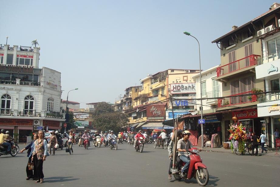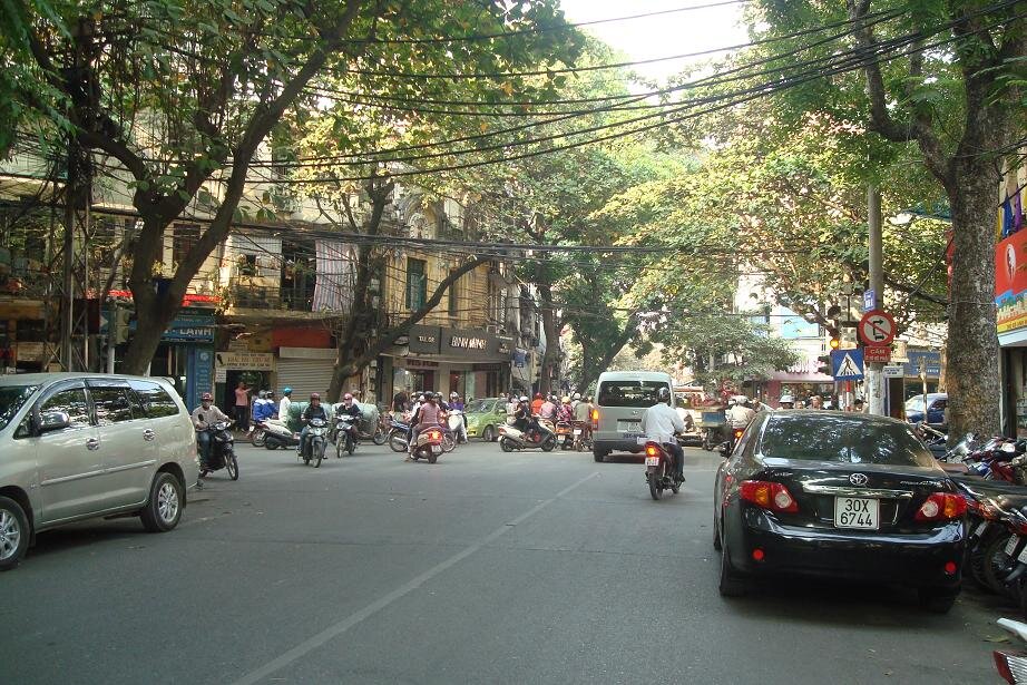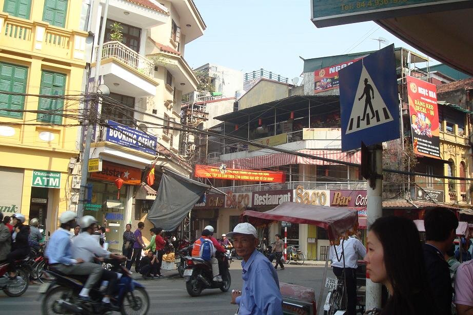 Grzecznie dziekujac wszystkim napotkanym taksowkarzo - przewodnikom udalam sie na autobus ktory mial mnie zawiesc do Old Quarter czyli bazy wypadowo - hotelowej wszystkich turystow. Nie wiem jaki jest koszt taksowki, ale na pewno spory, bo lotnisko jest jakies 30 km od centrum. Za to autobus (po wyjsciu z lotniska trzeba isc na prawo i na koncu postoju taksowek sa wspomniane busy) to koszt 2$ tudzież 40.000 dongow. Przy autobusie spotkalam Olka, który to z Polski przylecial w odwiedziny do znajomych. Cel mielismy podobny, choc Olo zafundowal sobie hotel za 18 zielonych, co jak dla mnie jest chyba budzetem na cały dzien :) takze plan zakladal ze razem dojedziemy, a potem to się zobaczy. Przejazd trwal około 1, 5 godziny i juz w autobusie byłam mala proba sil - my (turysci) vs. pan kierowaca i jego pomagier. Dla nich centrum było trochę wczesniej niz dla nas, a ze umowilismy się na inny cel to twardo stalismy przy swoim. Koniec końców wyladowalismy mniej wiecej tam gdzie plan zakladal. Ja to nawet mapy nie wyciagałam, bo i tak pewnie nie dużo bym z niej wyniosla :) wiec zdalam się na zdolnosci topograficzne grupy. I bardzo dobrze zrobiłam bo po jakis 15 minutach byłam mniej więcej tam gdzie chciałam. Z Olem zyczylismy sobie na rozchodne powodzenia, reszta grupy tez sie gdzies po drodze rozmyła. I zostałam sama. No to mysle sobie - czas na mapę. Patrze, krece, a to bokiem a to do gory nogami. Poszlam najpierw w prawo, ale jednak wrocilam do punktu wyjscia. No to poszlam w lewo. chyba z 20 razy sprawdzałam nazwy ulic, no bo jak tu rozroznic Hang Trong od Hang Bong. A jak do gry weszla Hang Hanh i Hang Hom to myslalam że zwariuje i do wieczora nie znjade hotelu.