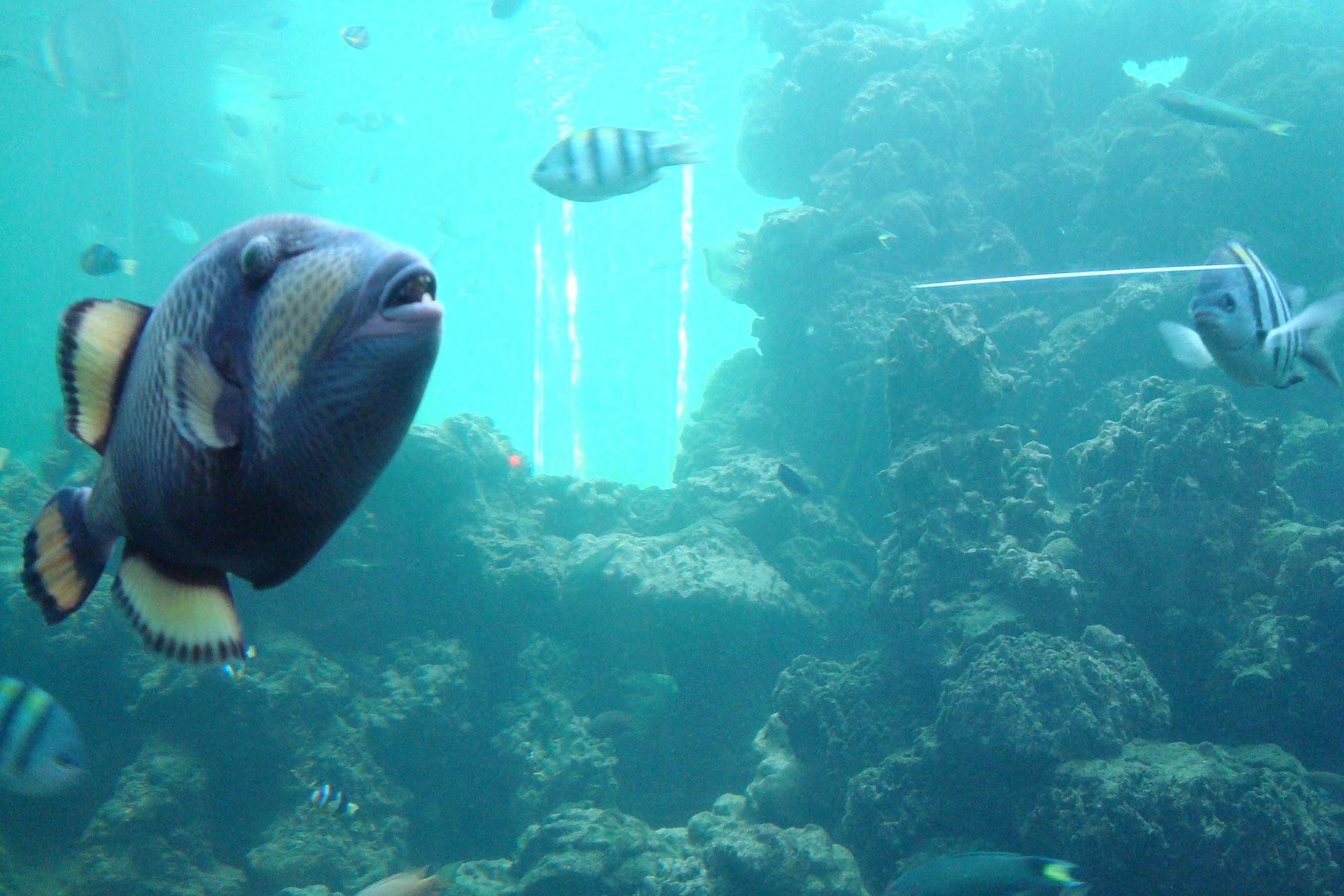 Plan rejsu zakladal ze pierwszym naszym przystankiem bedzie wyspa Hon Mieu, ktorej to duma i chluba jest akwarium. Wjazd kosztuje 35 000. Akwarium w stylu wietnamskiego kiczu imituje wielki statek, w srodku sa dosc male akwaria jak na dosc duze ryby...zolwie, piranie i wychudzone rekiny.