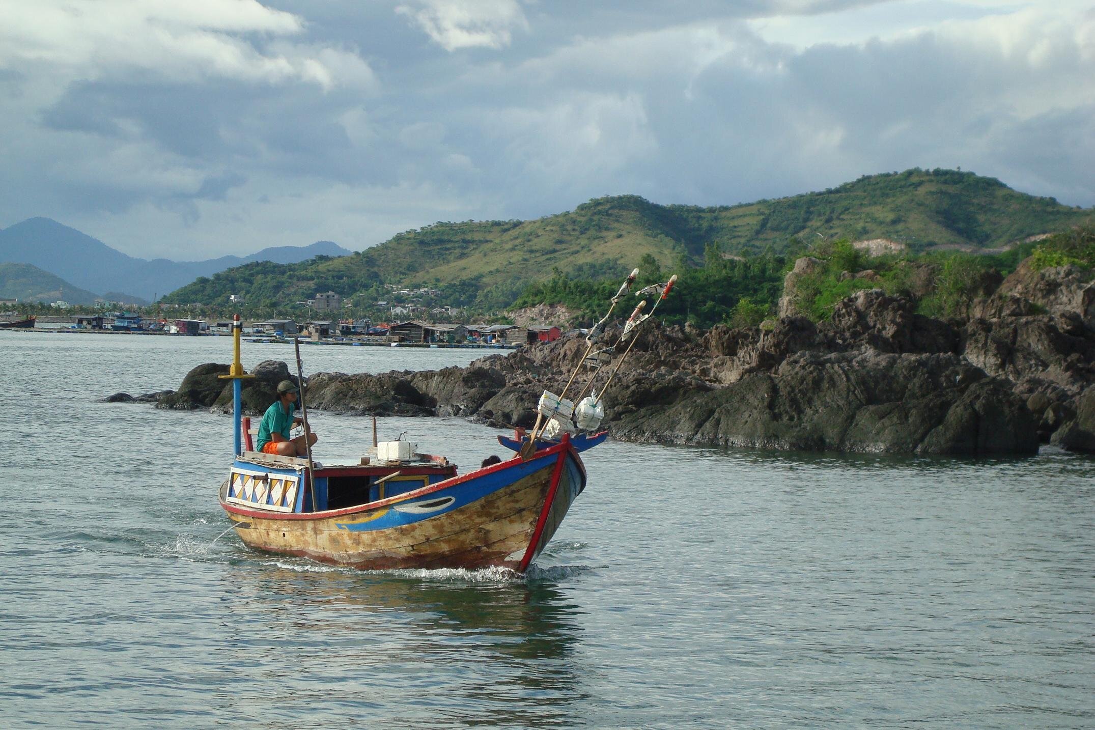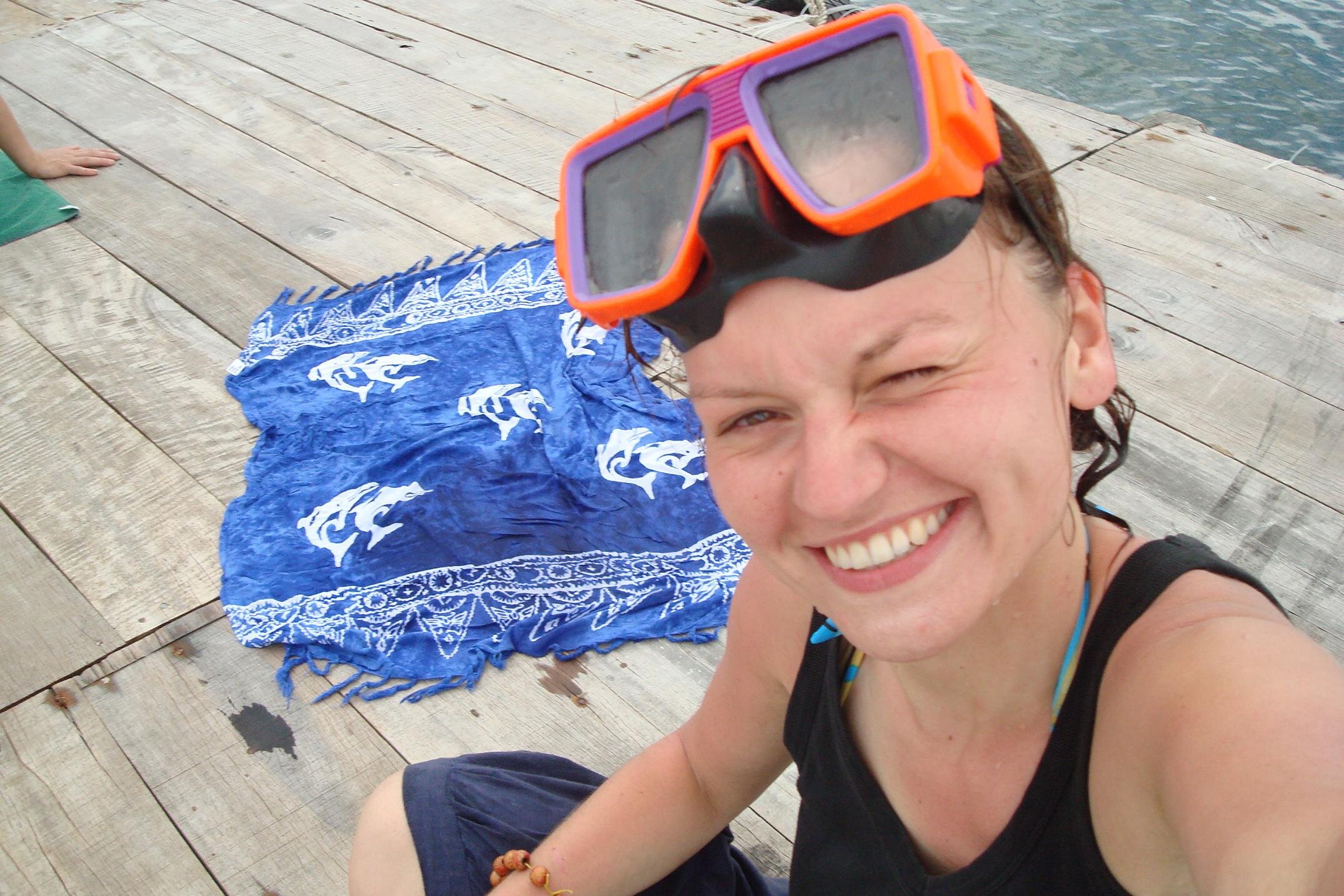 Po jakis 20 minutach znow sunelismy statkiem na spotkanie z kolejna przygoda. Tym razem snoorkling. Na kawalku jakiegos tekturowego pudelka potwierdzilam odbior sprzetu do nurkowania, czyli maski i fajki. Chwile mi zajelo podjecie decyzji czy wezme do ust rurke :) ktora nowa to nie byla a i uzywana wielokrotnie, ale wyjscia za specjalnie to nie bylo. Nurkowanie kojarzy mi sie z kolorowymi rafami kolarowymi, blekitem wody i lawicami ryb. W wersji wietnamksiej wyglada to skromniej, ale smieszniej. Ok - ryby byly, blekit wody juz nie bardzo, ale za to znalazlam na dnie: skarpetke, puszki po coli i piwie i kuchenna scierke :)