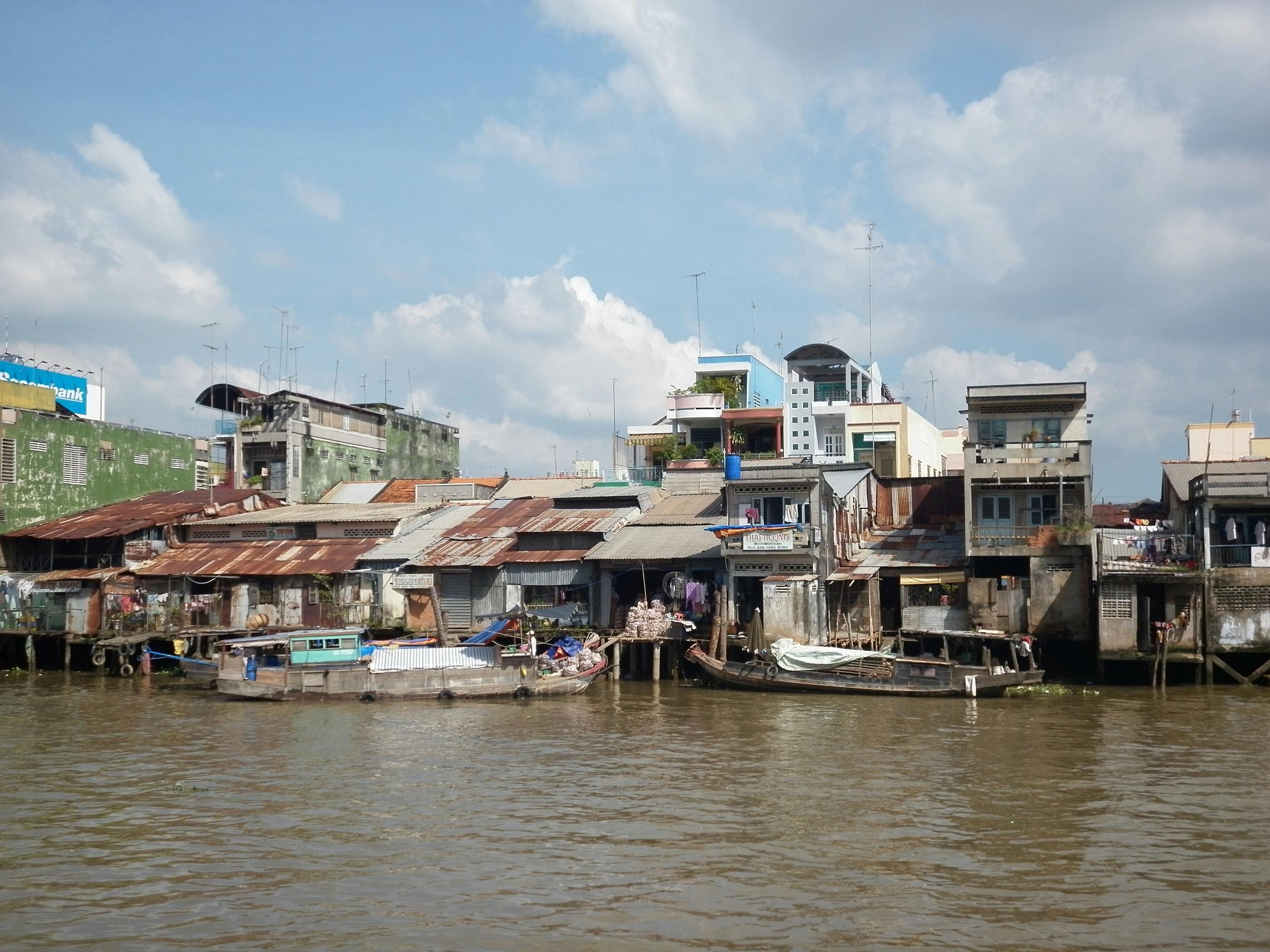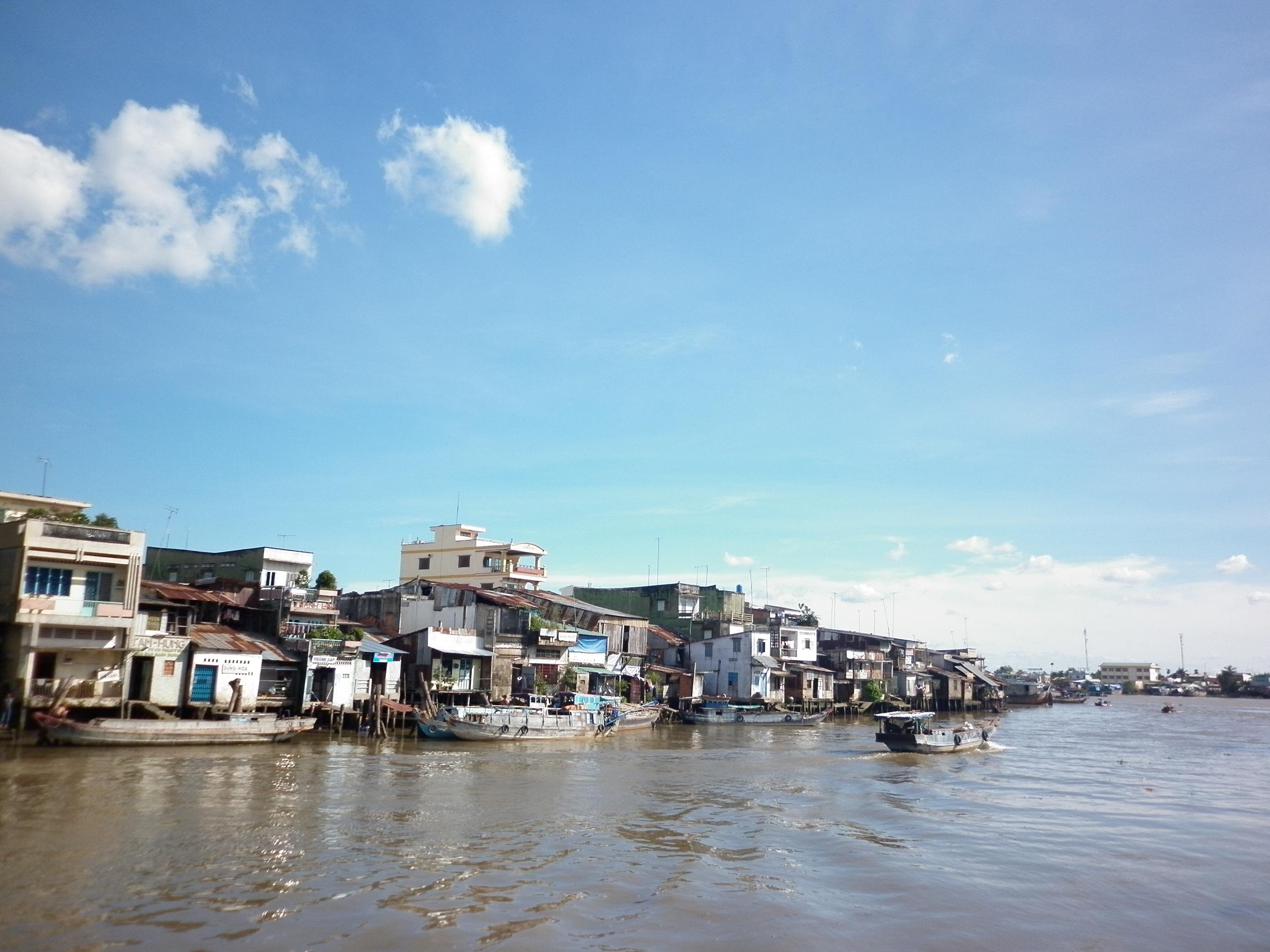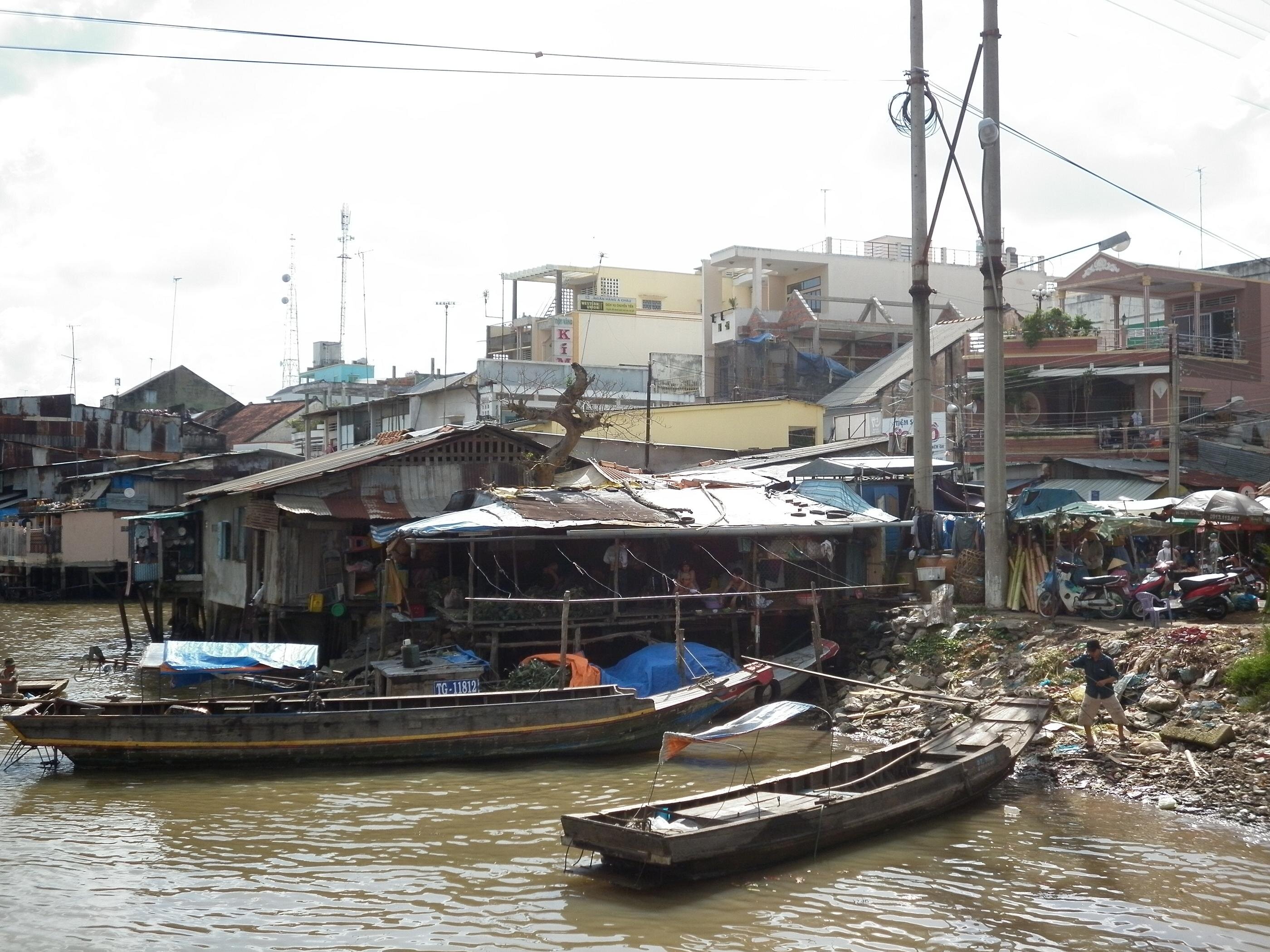 Ceny, chyba juz nie wiedzieli jakie wymyslac, bo krazyli wokol 20 dolarow za 3 godzinna wycieczke po okolicznych kanalach i wyspach delty. To co ja bylam w stanie dac to maks 10 i to tylko dlatego ze poranny spacer pokazal, ze My Tho co prawda jest fajne, ale na maks 3 godziny. Wystarczajaco, by zachaczyc o targ i przespacerowac sie wzdloz rzeki, gdzie mozna zobaczyc jak sie mieszka w tym miescie. A mieszka sie w domach na palach.