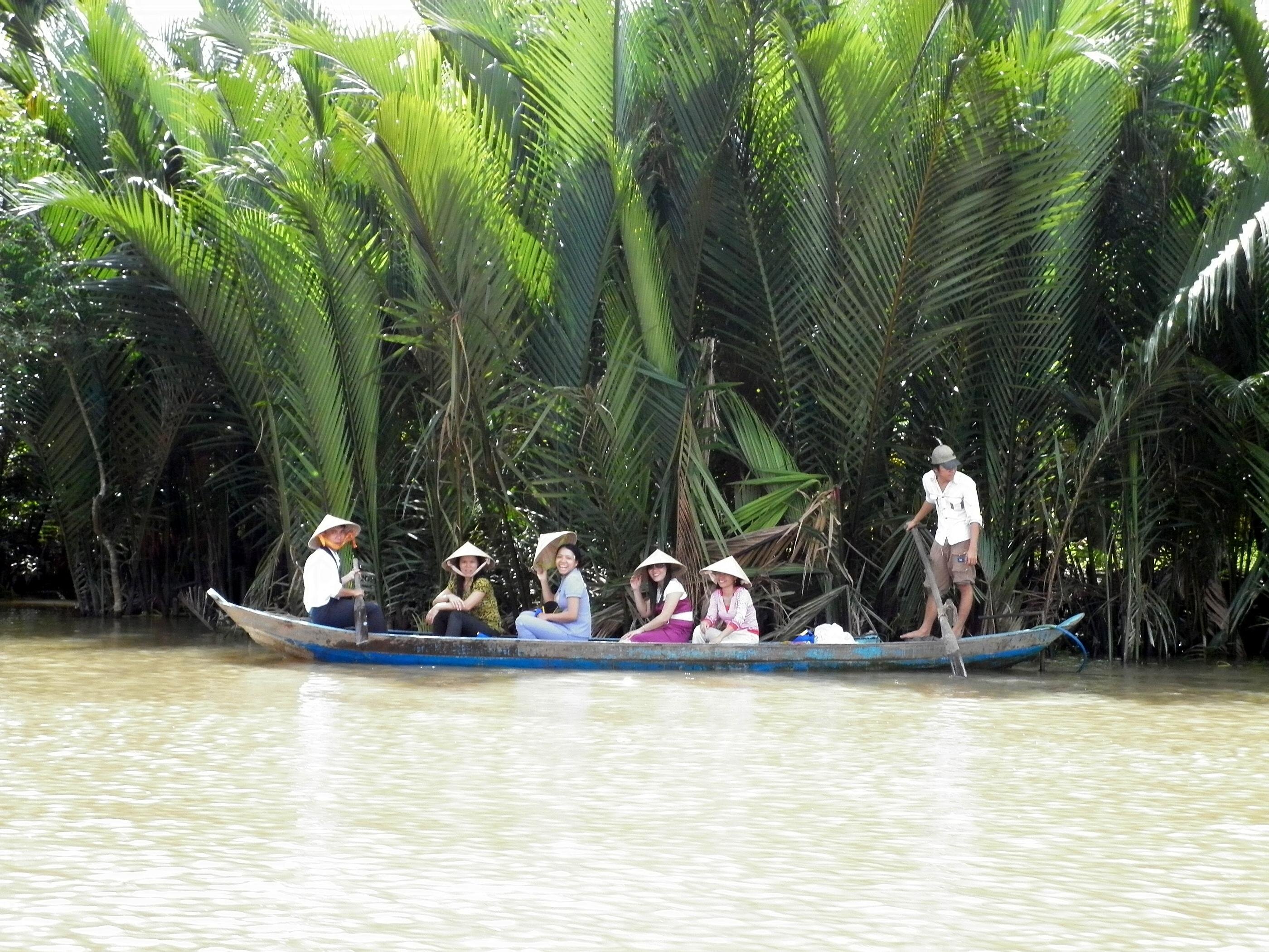 My Tho, czyli wrota do Delty Mekongu. Wystarczylo ze wyszlam na sniadanie, a posypaly sie propozyje wyprawy lodzia. Naprawde przyzwyczjam sie do faktu, ze zupa o 7 rano to wcale nie jest taki glupi pomysl. Pozniej temperatura wzrasta do takiego stopnia, ze jedzenie jest zdecydowanie ostatnia rzecza o ktorej myslisz.