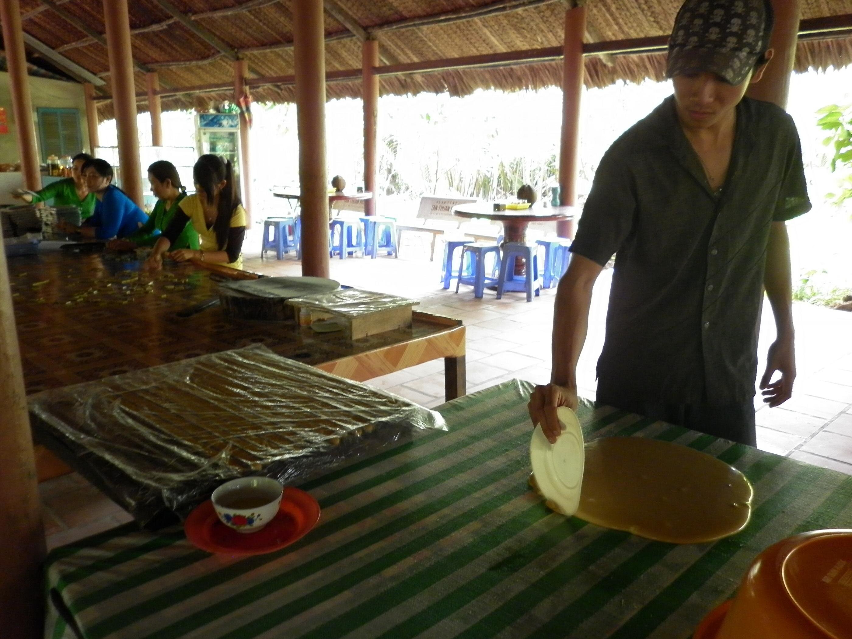 Z bratem mimo, ze nie gadalismy - dogadywalismy sie i dobrze bylo nam w naszym towarzystwie. Jakies mial zapedy do fotografii bo co chwila chcial mi gdzies robic zdjecia. Wiec zaproponowalam zamiane. Ja steruje lodzia, a on cpyka foty. No i poszedl na to :) Zakasalam zatem rekawy i plyne. Pokrecilismy sie po okolicznych kanalach, mniejszych, wiekszych, zajrzelismy na wyspe jedna, druga, ale prawdziwa zabawa zaczela sie dopiero w fabryce cukierkow kokosowych i bananowego wina. Sama nie wiem co lepsze. Degustacji nie bylo konca, a jak w gre weszla jeszcze wodka z weza to juz sama nie wiedzialam czy lepiej bedzie jak ja bede prowadzic lodke, czy mlodszy brat.